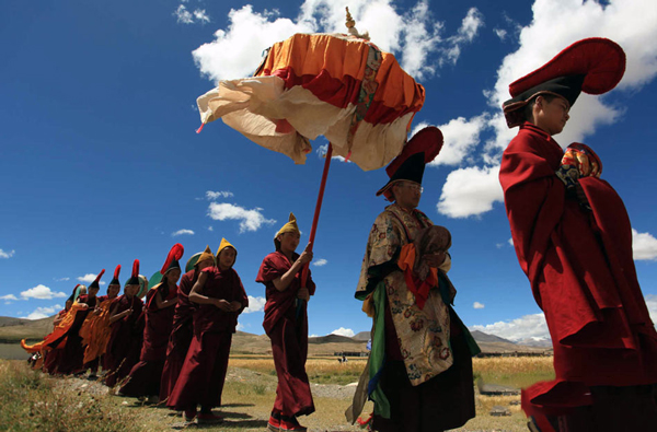 萨迦派中的“萨迦”(sa-skya)藏语意为灰白色的土地,因该派的主寺——萨迦寺建寺所在地呈灰白色而得名。由于该教派寺院围墙涂有象征文殊菩萨、观音菩萨和金刚手菩萨的红、白、黑三色花条,故又称花教。萨迦派有血统、法统两支传承。元代以后,萨迦派内又出现俄尔、贡噶、察尔3个支派。