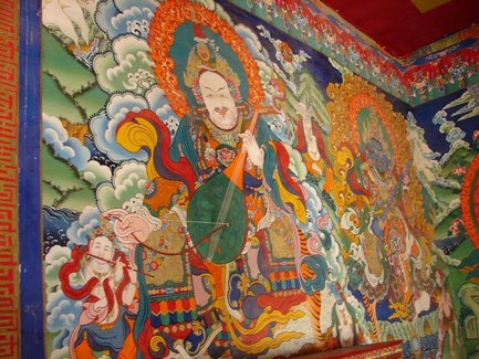 措钦大殿里还保存有一到四世达赖喇嘛的灵塔。大殿四壁,绘有许多精彩壁画,有释迦牟尼的百行转图、人间形成图、生死轮回图等。措钦大殿东边有一个半地下的很小的山洞,只能容一个人进入,名叫“让迥玛”。它原来是宗喀巴祖师闭关静修的地方,也是哲蚌寺最早的建筑。大殿3层是强巴佛(弥勒菩萨)殿。这尊强巴佛像是当年宗喀巴祖师在世的时候由他亲自开光的,极为著名。强巴佛殿再往上就是用金轮、宝幢装饰的大殿的金顶。