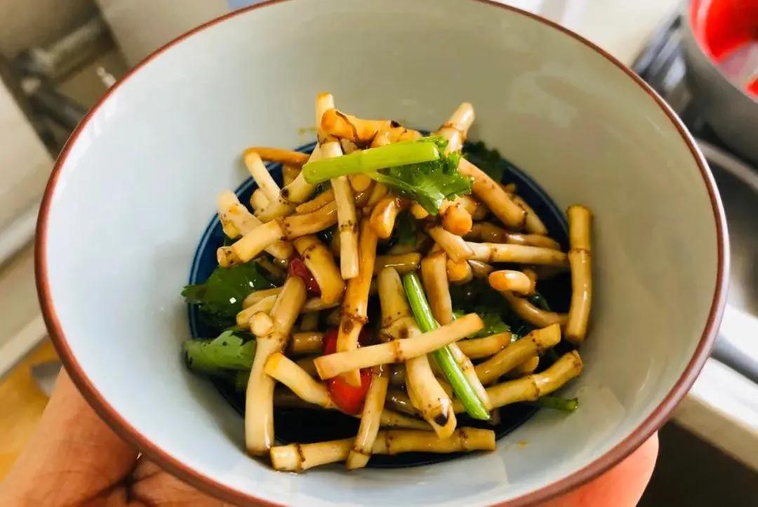 4. 菌菇焯盐水1分钟,捞出过凉备用;