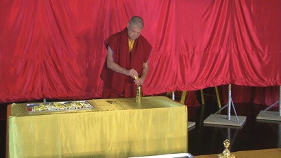 当众人恭诵祈请文时,万里无云,照常烈日当空,就在这一刻,竟然滚雷在上空打响,一声接一声,地动天摇,雷轰风啸,突然自西方捲来一阵大风,大众惊奇无比,无法言喻的祥瑞法喜, 顿时充满整个坛场,世尊佛陀和诸天护法已圣临坛城上空,圣境现前!雷声和风啸约半分钟又骤然而止。